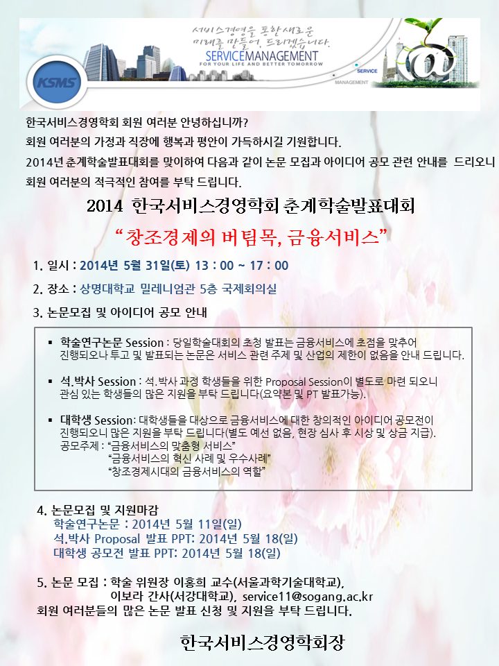 2014 한국서비스경영학회 춘계학술발표대회 안내